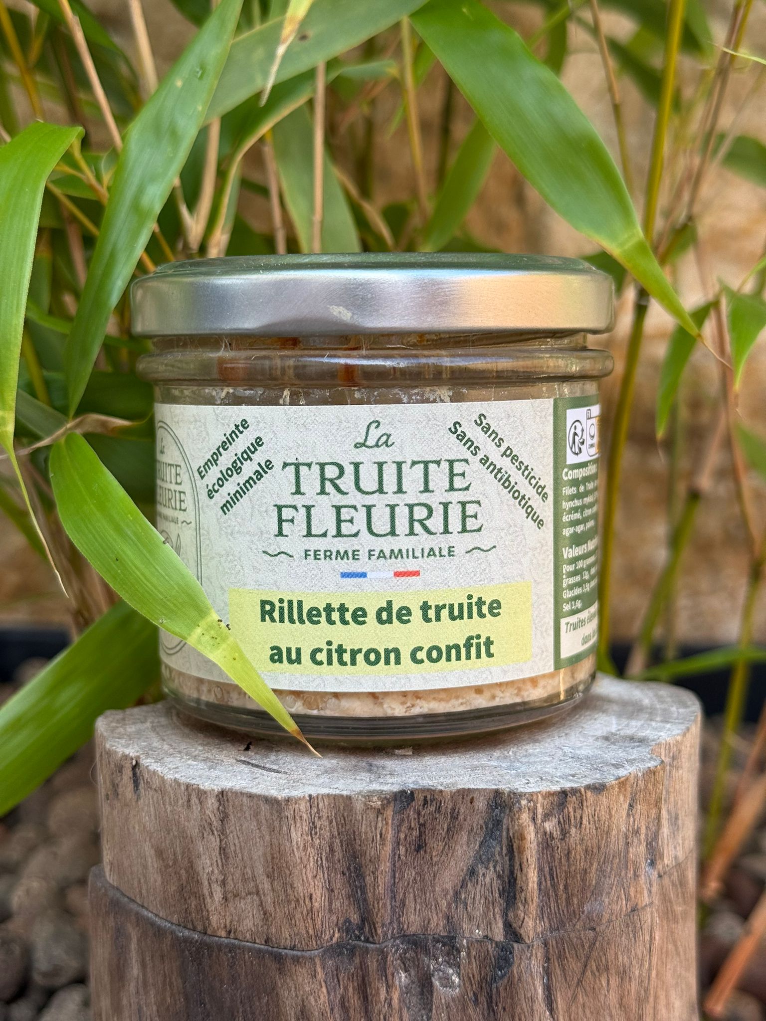 Ingrédients : Filets de truite Arc-en-ciel fraîche Oncorhynchus mykiss (57%), crème liquide, lait 1/2 écrémé, citron confit bio (4%), sel, jus de citron, agar-agar, poivre.
